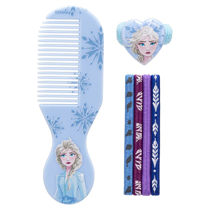 Kit Frozen é o presente ideal para as crianças e fãs. Contém: 1 pente, 1 elástico com personagem e 4 elásticos coloridos.