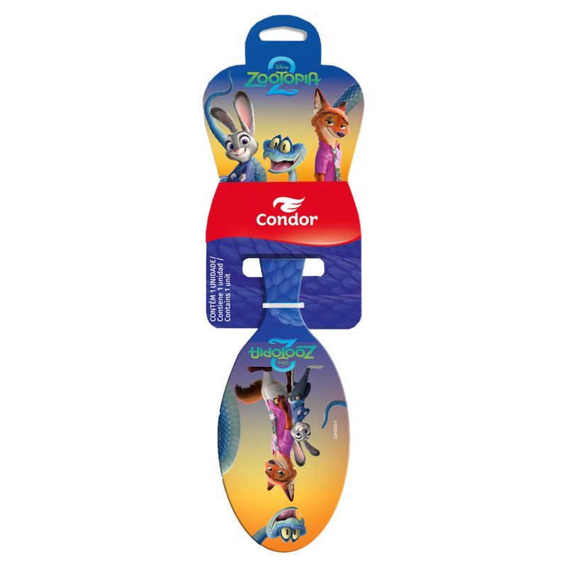 A Escova para Cabelo Oval Azul Zootopia 2 Condor possui base almofadada e pinos arredondados, proporcionando desembaraço suave sem puxar os fios, enquanto massageia delicadamente o couro cabeludo.