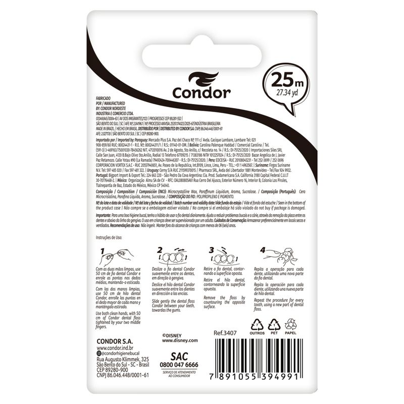 O Fio Dental com Cera Tutti-Frutti Zootopia 2 Condor 25m é macio, resistente e com deslizamento suave entre os dentes, removendo a placa onde a escova não alcança, ajudando a prevenir cáries e mau hálito. Tudo isso com o delicioso sabor Tutti-Frutti que as crianças adoram!"