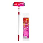 Possui o cabo extensível até 1,20 metros, permitindo o alcance de vidros mais altos, ou quando o cabo estiver no comprimento mínimo, pode usá-lo diretamente na mão. Além dessa facilidade, este mop também possui um sistema de dupla angulação, permitindo a limpeza de cantos e quinas. O refil de microfibra é facilmente destacado e lavável em máquina.